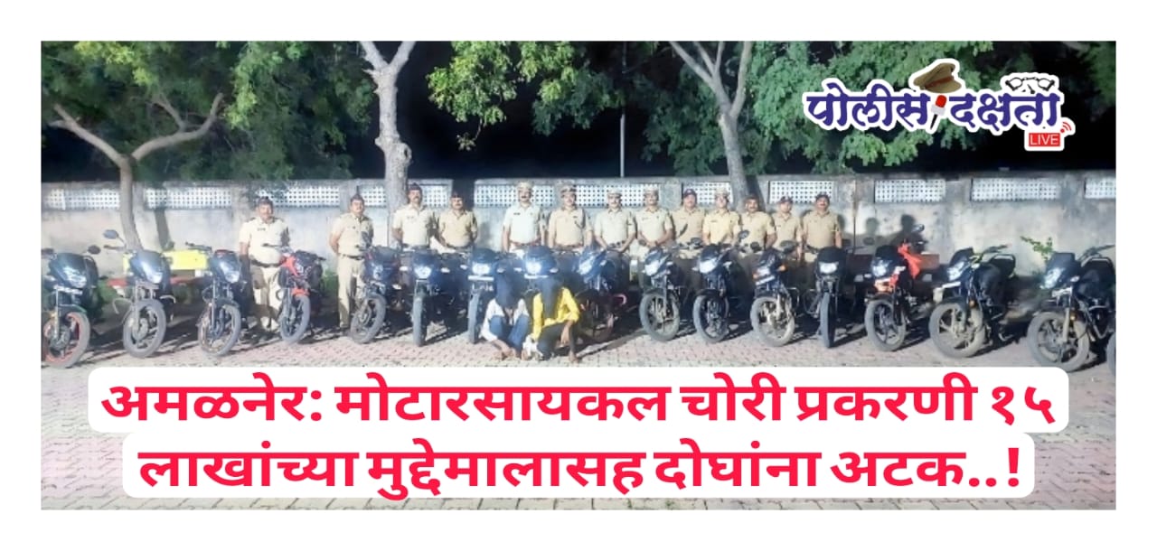 अमळनेर पोलीस ठाण्यात दाखल असलेल्या गुन्हा क्र. ३०८/२०२५, २९९/२०२५ आणि २३३/२०२५ या मोटारसायकल चोरी प्रकरणांचा तपास सुरु असताना पोलिसांनी सीसीटीव्ही फूटेज व तांत्रिक माहितीच्या आधारे संशयितांचा माग काढला. तपासात आरोपी हिर्भत हिल्या पाकट, अंबालाल भुरट्या खरडे (दोघे रा. शहादा, जि. नंदुरबार) यांच्याकडे संशय बळावल्यानंतर त्यांना ताब्यात घेऊन चौकशी करण्यात आली. चौकशीत दोघांनी अमळनेर व परिसरातून मोटारसायकली चोरल्याची कबुली दिली.