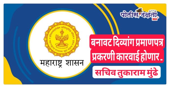 मुंबई | प्रतिनिधी | पोलीस दक्षता लाईव्ह :-  दिव्यांग व्यक्तींना दिले जाणारे वैश्विक दिव्यांग ओळखपत्र (यूडीआयडी) हे शासकीय, निमशासकीय नोकरीतील आरक्षण, विविध शासकीय योजना,आर्थिक सवलती आणि इतर लाभ मिळविण्यासाठी महत्त्वाचे दस्तऐवज आहे. मात्र, अलीकडे काही ठिकाणी बनावट किंवा चुकीच्या तपासणी अहवालांच्या आधारे यूडीआयडी कार्ड मिळविण्याचे प्रकार समोर आले आहेत. यामुळे खऱ्या दिव्यांग व्यक्तींवर अन्याय होत असल्याने यूडीआयडी कार्ड जारी करण्यापूर्वी संबंधित वैद्यकीय तपासणी अहवालांची पडताळणी संबंधित संस्थेमार्फत करणे आवश्यक असल्याचे दिव्यांग कल्याण विभागाचे सचिव तुकाराम मुंढे यांनी सांगितले.चुकीचे किंवा बनावट दिव्यांगत्व प्रमाणपत्र घेणे अथवा देणे हा कायद्याने गुन्हा असून, अशा प्रकरणांमध्ये दिव्यांग व्यक्ती हक्क अधिनियम, २०१६ मधील तरतुदींनुसार संबंधित व्यक्तींवर कडक कारवाई करण्यात येणार असल्याचेही त्यांनी सांगितले.
