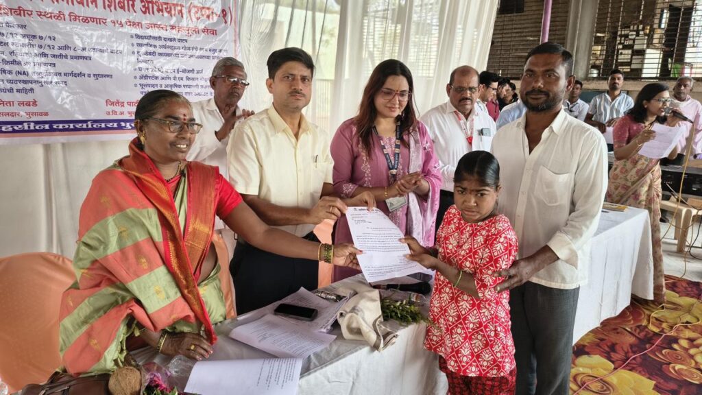 भुसावळ | जितेंद्र काटे | पोलीस दक्षता लाईव्ह :- शासनाच्या छत्रपती शिवाजी महाराज समाधान शिबीर अभियान अंतर्गत टप्पा क्रमांक एकमधील दुसरे शिबिर भुसावळ तालुक्यातील कुऱ्हे पानाचे येथे रेणुका माता मंदिर परिसरात पार पडले. विविध शासकीय योजनांचा लाभ थेट नागरिकांपर्यंत पोहोचल्याने लाभार्थ्यांनी समाधान व्यक्त केले.