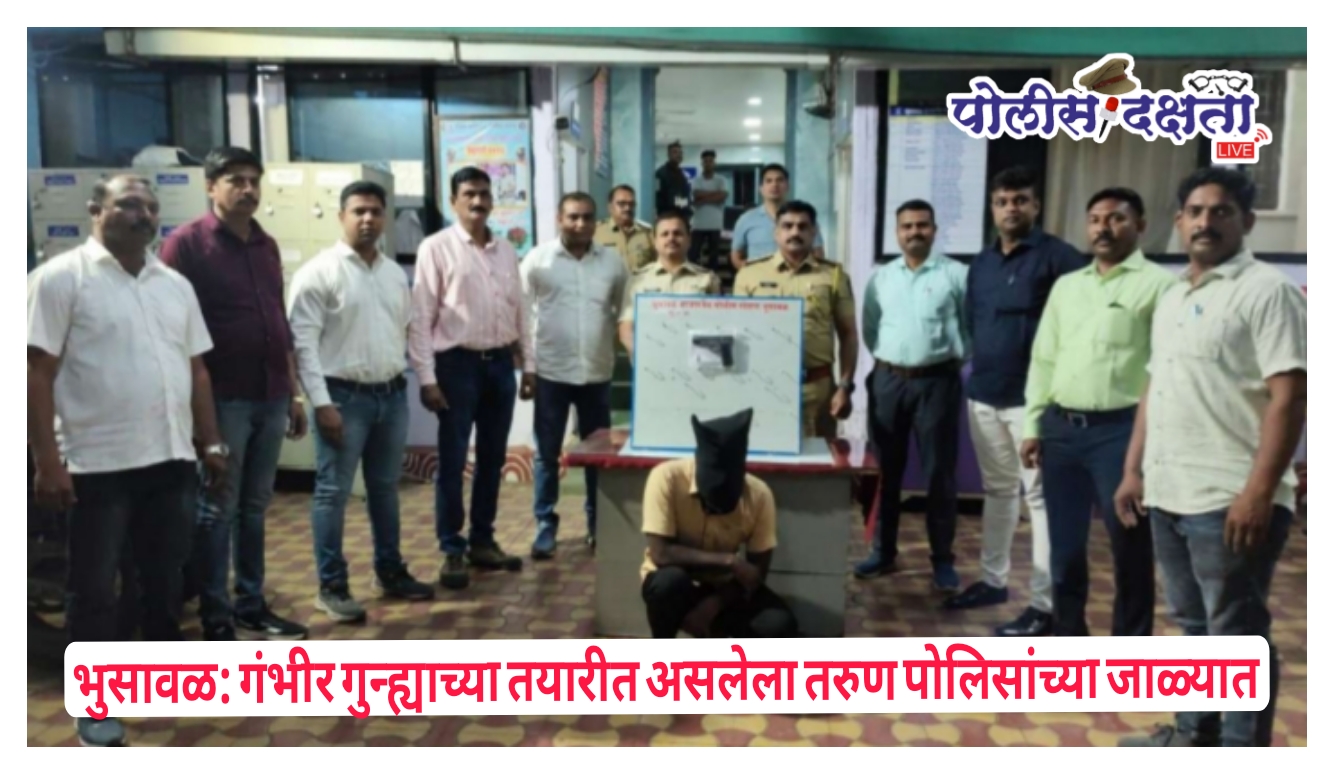भुसावळ | प्रतिनिधी | पोलीस दक्षता लाईव्ह :- शहरात गंभीर गुन्हा करण्याच्या उद्देशाने गावठी पिस्टल बाळगून फिरणाऱ्या एका तरुणास भुसावळ बाजारपेठ पोलीस स्टेशनच्या डी.बी. पथकाने अटक केली आहे. ही कारवाई श्रीराम नगर परिसरात करण्यात आली.जळगाव जिल्ह्याचे पोलीस अधीक्षक श्री. महेश्वर रेड्डी, अप्पर पोलीस अधीक्षक श्री. अशोक नखाते तसेच उपविभागीय पोलीस अधिकारी भुसावळ विभागाचे श्री. केदार बारबोले यांनी अवैध शस्त्रधारकांवर कठोर कारवाई करण्याचे आदेश दिले होते. त्यानुसार पोलीस निरीक्षक राहुल वाघ यांच्या मार्गदर्शनाखाली डी.बी. पथकाने ही कारवाई केली.