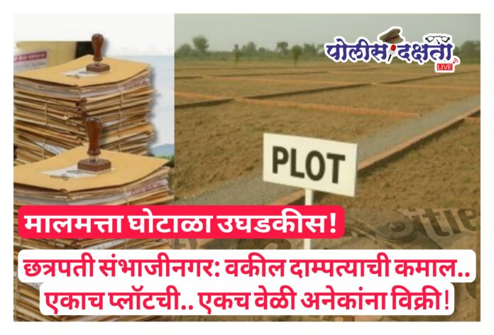 छत्रपती संभाजीनगर | प्रतिनिधी | पोलीस दक्षता लाईव्ह :- गारखेडा परिसरातील स्वप्ननगरी येथे राहणाऱ्या वकील दाम्पत्याने गंगापूर जहाँगीर येथील प्लॉट्सची एकाच वेळी अनेकांना विक्री करून कोट्यवधींची फसवणूक केल्याचा धक्कादायक प्रकार समोर आला आहे. मुद्रांक नोंदणीच्या विकेंद्रीकरणाच्या सुविधेचा गैरफायदा घेत या दाम्पत्याने तब्बल दोन वर्षांत सातहून अधिक नागरिकांना गंडविल्याचे तपासात निष्पन्न झाले आहे. हर्षल भागचंद शिंदे व सायली हर्षल शिंदे असे या वकील दाम्पत्याचे नाव असून, त्यांच्या विरोधात सातारा व सिटी चौक पोलिस ठाण्यात तीन वेगवेगळ्या तक्रारी दाखल करण्यात आल्या आहेत.