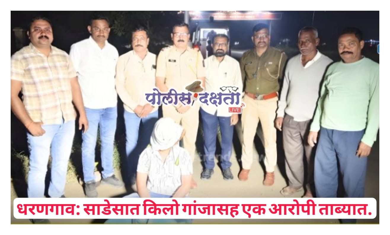 पोलीस अधीक्षक महेश्वर रेड्डी यांच्या मार्गदर्शनाखाली स्थानिक गुन्हे शाखेचे पोलीस निरीक्षक राहुल गायकवाड यांच्या पथकासह धरणगाव पोलीस ठाण्याचे पोलीस निरीक्षक सुनील पवार, पोलीस उपनिरीक्षक संतोष पवार, हेडकॉन्स्टेबल विष्णू बिऱ्हाडे, कॉन्स्टेबल दीपक माळी, रवींद्र पाटील, सुधीर चौधरी, दीप पाटील आणि किशोर भोई यांनी ही संयुक्त कारवाई केली.पथकाने मिळालेल्या गुप्त माहितीच्या आधारे सदर ठिकाणी सापळा रचून सुमारे साडेसात किलो वजनाचा गांजा जप्त केला. घटनेनंतर परिसरात एकच खळबळ उडाली असून पुढील तपास पोलीस करत आहेत.
