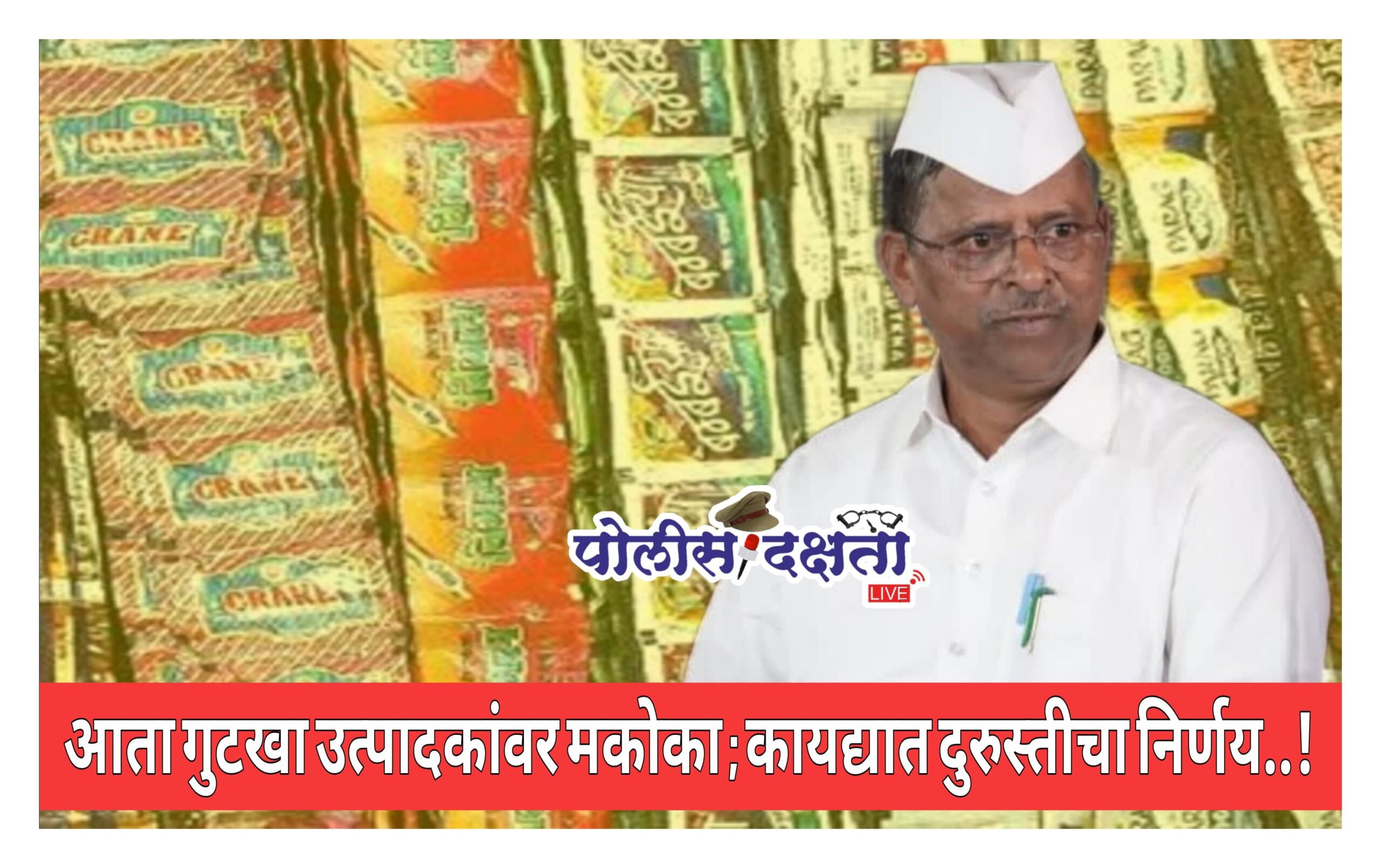 मुंबई | प्रतिनिधी | पोलीस दक्षता लाईव्ह :- राज्यात गुटखाबंदी असतानाही शाळा व महाविद्यालय परिसरांसह अनेक ठिकाणी गुटखा आढळून येत असल्याच्या पार्श्वभूमीवर गुटखा बंदी कायद्याची कडक अंमलबजावणी करण्यासाठी शासनाने गुटखा उत्पादकांवर महाराष्ट्र संघटित गुन्हेगारी नियंत्रण कायदा (मकोका) लागू करण्याचा निर्णय घेतला आहे. मकोका लावण्यासाठी आवश्यक त्या दुरुस्त्या कायद्यात करण्यात येणार असून, येत्या नववर्षापासून गुटखा उत्पादकांवर मकोका अंतर्गत कारवाई केली जाईल, अशी माहिती अन्न व औषध प्रशासन तसेच विशेष सहाय्य मंत्री नरहरी झिरवाळ यांनी दिली.