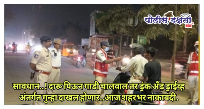 नववर्षाच्या उत्साहात अनेक ठिकाणी मोठ्या प्रमाणात कार्यक्रमांचे आयोजन होत असताना, निवडणूक कालावधी सुरू असल्याने पोलिस-प्रशासनाने अधिक दक्षता घेण्याचा निर्णय घेतला आहे. आकाशवाणी चौक, काव्यरत्नावली चौक, टॉवर चौक, अजिंठा चौफुली, छत्रपती संभाजीनगर महामार्गासह शहराच्या चारही बाजूंनी नाकाबंदी करून वाहनांची कसून तपासणी केली जाणार आहे. नागरिकांनी नियमांचे पालन करावे, मद्यप्राशन केल्यानंतर वाहन चालवू नये, अन्यथा कठोर कारवाईस सामोरे जावे लागेल, असे आवाहन पोलिस प्रशासनाने केले आहे.