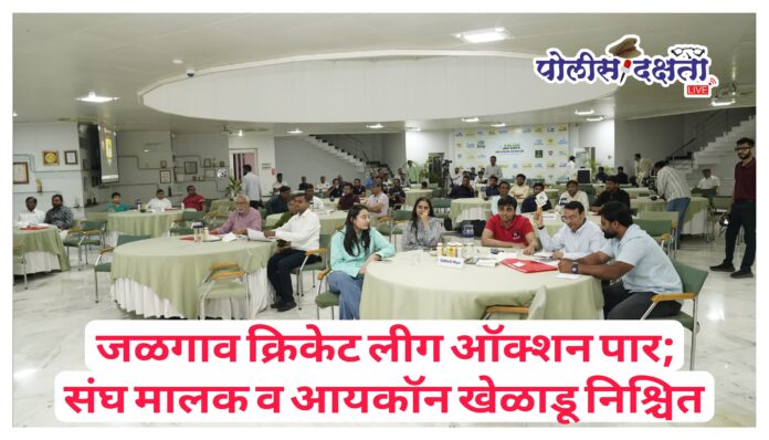 जळगाव | प्रतिनिधी | पोलीस दक्षता लाईव्ह :- रतनलाल सी. बाफना ज्वेलर्स यांच्या प्रायोजकत्वाखाली व जळगाव जिल्हा क्रिकेट असोसिएशनतर्फे आयोजित ‘जळगाव क्रिकेट लीग–२०२६ (JCL T-20 पर्व-२)’ स्पर्धेसाठी फ्रँचायझी व आयकॉन खेळाडूंचे ऑक्शन जैन हिल्स येथील परिश्रम हॉलमध्ये उत्साहात पार पडले. या ऑक्शनमध्ये जळगाव किंग्स संघासाठी सर्वाधिक चुरस पाहायला मिळाली असून ही फ्रँचायझी दाल परिवारने मिळवली.यानंतर झालेल्या आयकॉन खेळाडूंच्या लिलावात ओम मुंडे हा सर्वात महागडा खेळाडू ठरला. त्याला सागर पार्क क्रिकेट क्लबच्या चाळीसगाव चार्जर्स संघाने आपल्या ताफ्यात घेतले. विविध संघांनी प्रशिक्षक व आयकॉन खेळाडूंवर बोली लावत संघबांधणी मजबूत केली.