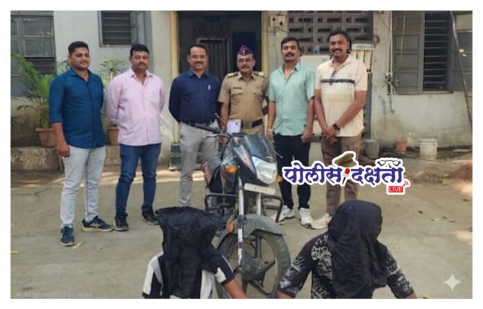 जळगाव | प्रतिनिधी | पोलीस दक्षता लाईव्ह :- शहरातील नवीन बसस्थानक परिसरातून चोरीस गेलेल्या मोटारसायकल प्रकरणाचा जिल्हापेठ पोलीस ठाण्याने छडा लावून दोन आरोपींना अटक केली असून त्यांच्या ताब्यातून एक मोटारसायकल जप्त करण्यात आली आहे.याबाबत मिळालेल्या माहितीनुसार, नवीन बसस्थानक येथून मोटारसायकल चोरीला गेल्याप्रकरणी जिल्हापेठ पोलीस ठाण्यात दि.२० जानेवारी २०२६ रोजी गुन्हा दाखल करण्यात आला होता.