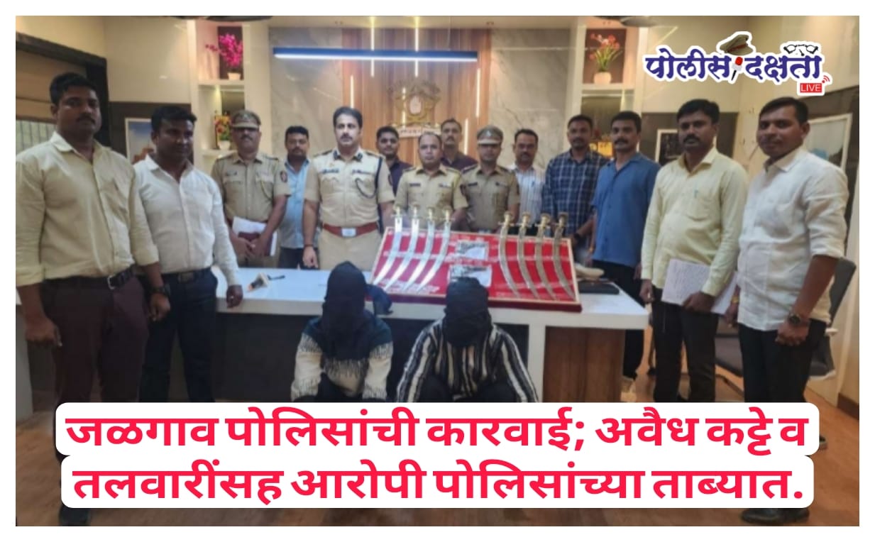 जळगाव | प्रतिनिधी | पोलीस दक्षता लाईव्ह :- शहरातील वाढत्या गुन्हेगारीला आळा घालण्यासाठी जळगाव पोलिसांनी केलेल्या ठोस कारवाईत खुनाच्या गंभीर गुन्ह्यातील फरार संशयितासह त्याच्या साथीदाराला अटक करण्यात आली. या कारवाईदरम्यान पोलिसांनी मोठ्या प्रमाणावर अवैध शस्त्रसाठा जप्त केल्याने परिसरात खळबळ उडाली आहे.