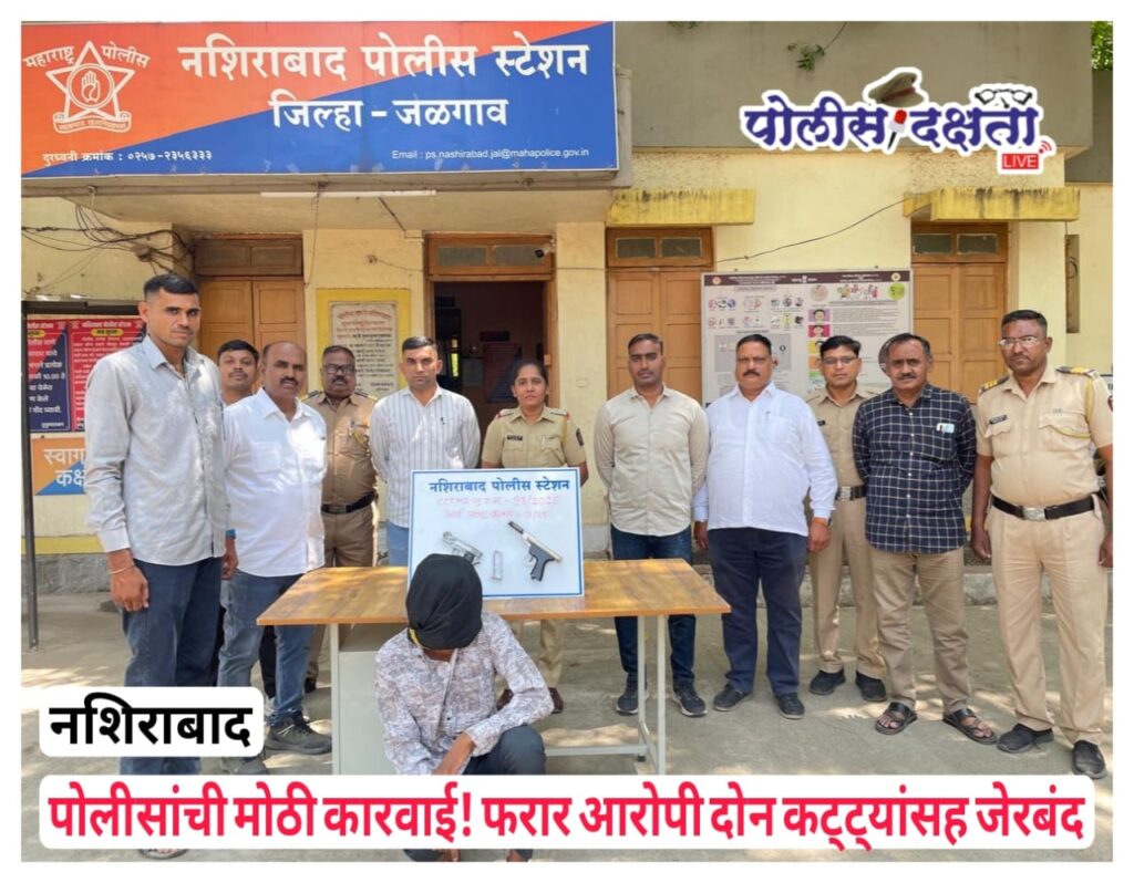 दरम्यान, नशिराबाद पोलीस ठाण्याच्या हद्दीत राबविण्यात आलेल्या विशेष मोहिमेत दरोड्याच्या गुन्ह्यातील फरार संशयिताला अटक करण्यात आली. चेतन सूर्यभान पाटील (वय १८, रा. नशिराबाद) असे अटक करण्यात आलेल्या तरुणाचे नाव आहे.बसस्थानक परिसरात संशयास्पद हालचाली करत असल्याची माहिती मिळताच पोलिसांनी सापळा रचून त्याला ताब्यात घेतले. तपासणीदरम्यान त्याच्याकडून एक अस्सल गावठी कट्टा व एक बनावट कट्टा जप्त करण्यात आला. याप्रकरणी नशिराबाद पोलीस ठाण्यात गुन्हा दाखल करण्यात आला असून पुढील तपास सुरू आहे.
