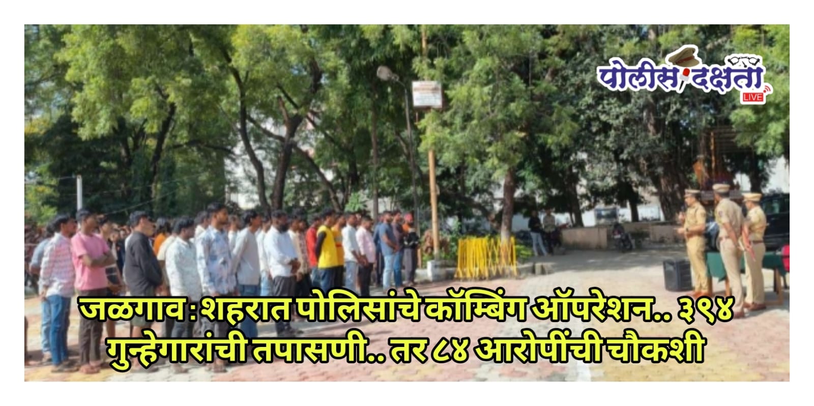 जळगाव शहर पोलीस स्टेशन हद्दीत: शिवाजीनगर, गेंदालाल मिल, राजमालती नगर, शाहुनगर या भागात कॉम्बिंग ऑपरेशन.