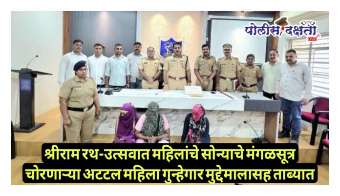 जळगाव | प्रतिनिधी | पोलीस दक्षता लाईव्ह :- जळगाव शहरातील श्रीराम रथउत्सवाच्या कार्यक्रमादरम्यान महिलांच्या सोन्याच्या मंगळसूत्राच्या वाट्या व मणी चोरी करणाऱ्या अटटल महिला गुन्हेगारांना जळगाव शहर पोलिसांच्या गुन्हे शोध पथकाने अवघ्या काही तासांत गजाआड केले असून, त्यांच्या ताब्यातून सुमारे ₹४०,००० किमतीचा मुद्देमाल हस्तगत करण्यात आला आहे. या उत्कृष्ट कारवाईबद्दल पोलिस दलाचे सर्वत्र कौतुक होत आहे.