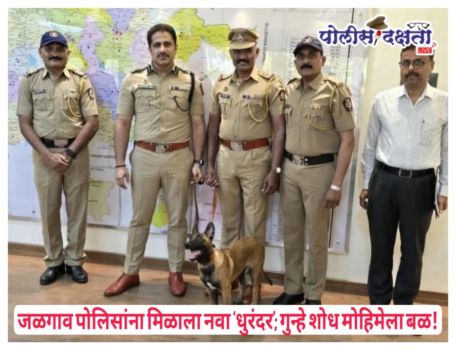 जळगाव | प्रतिनिधी | पोलीस दक्षता लाईव्ह :- जळगाव जिल्हा पोलीस दलाच्या श्वान पथकात नव्या श्वानाची भर पडली असून या श्वानाचे नाव “धुरंदर” असे ठेवण्यात आले आहे. गुन्हे शोध, तपास तसेच कायदा व सुव्यवस्था राखण्यासाठी “धुरंदर” महत्त्वाची भूमिका बजावणार असल्याची माहिती पोलीस प्रशासनाकडून देण्यात आली.पोलीस तपास प्रक्रियेत श्वान पथकाचे विशेष महत्त्व असते. घटनास्थळावरील पुरावे शोधणे, संशयितांचा माग काढणे आणि गुन्हे उकलण्यात श्वानांची मदत प्रभावी ठरते. या पार्श्वभूमीवर “धुरंदर”चा समावेश पोलीस दलासाठी एक मोठी ताकद मानला जात आहे.