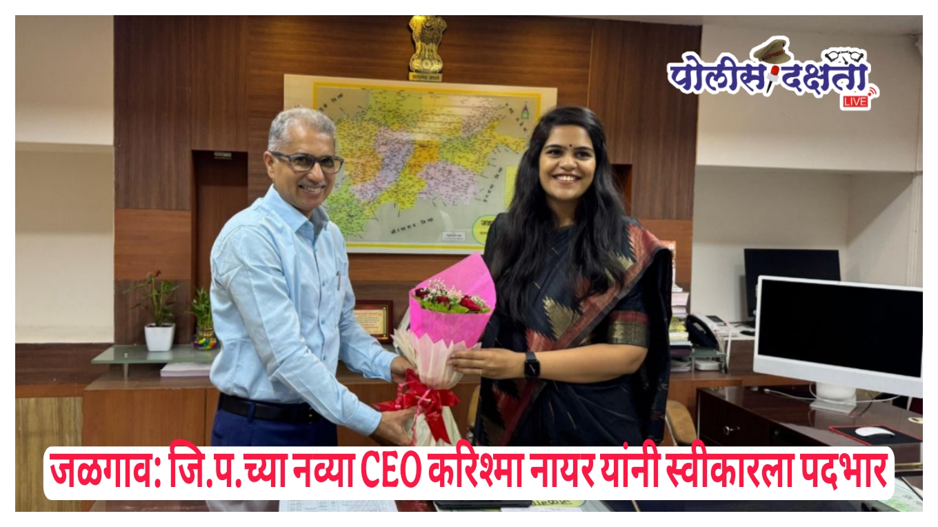 जळगाव | प्रतिनिधी | पोलीस दक्षता लाईव्ह :- जळगाव जिल्हा परिषदेच्या मुख्य कार्यकारी अधिकारीपदी नव्याने नियुक्त झालेल्या करिश्मा नायर यांनी शुक्रवारी (दि. १० एप्रिल) अधिकृतपणे पदभार स्वीकारला. अतिरिक्त मुख्य कार्यकारी अधिकारी रणधीर सोमवंशी यांच्या हस्ते त्यांना पदभार सुपूर्द करण्यात आला. यावेळी विविध विभागांचे प्रमुख अधिकारी उपस्थित होते.माजी मुख्य कार्यकारी अधिकारी मिनल करनवाल यांच्या बदलीनंतर रिक्त झालेल्या पदावर करिश्मा नायर यांची नियुक्ती करण्यात आली आहे. त्या यापूर्वी नाशिक महानगरपालिकेत अतिरिक्त आयुक्त म्हणून कार्यरत होत्या. पदभार स्वीकारल्यानंतर त्यांनी तत्काळ प्रशासकीय इमारतीतून आपल्या कामकाजाची सुरुवात केली.