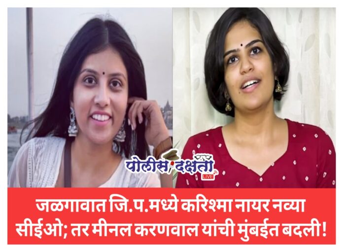 जळगाव | प्रतिनिधी | पोलीस दक्षता लाईव्ह :- राज्यातील प्रशासकीय बदल्यांच्या पार्श्वभूमीवर जळगाव जिल्हा परिषदेत महत्त्वाचा बदल करण्यात आला आहे. जिल्हा परिषदेच्या मुख्य कार्यकारी अधिकारी मीनल करनवाल यांची बदली करण्यात आली असून, त्यांच्या जागी करिश्मा नायर यांची नियुक्ती करण्यात आली आहे.मीनल करनवाल यांनी आपल्या कार्यकाळात जिल्ह्यात विविध विकासकामांना चालना देत प्रशासनात ठसा उमटवला होता. त्यांच्या कार्याची दखल घेत राज्य शासनाने त्यांना मुंबई येथे ‘नानाजी देशमुख कृषी संजीवनी प्रकल्प’ (पोकरा) या महत्त्वाकांक्षी योजनेच्या प्रकल्प संचालकपदी जबाबदारी सोपवली आहे. हवामान बदलाच्या पार्श्वभूमीवर कृषी क्षेत्र अधिक सक्षम करण्याच्या दृष्टीने हा प्रकल्प अत्यंत महत्त्वाचा मानला जातो.