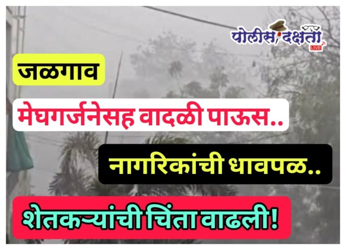 जळगाव | प्रतिनिधी | पोलीस दक्षता लाईव्ह :- जिल्ह्यात आज सोमवार रोजी सायंकाळच्या सुमारास अचानक मेघगर्जनेसह वादळी पावसाने जोरदार हजेरी लावत उकाड्याने हैराण झालेल्या नागरिकांना काहीसा दिलासा दिला. मात्र या अवकाळी पावसामुळे शेतकरी आणि रस्त्यावरील विक्रेत्यांची मोठी धावपळ उडाली असून काही ठिकाणी पिकांचे नुकसान झाल्याची प्राथमिक माहिती पुढे येत आहे.