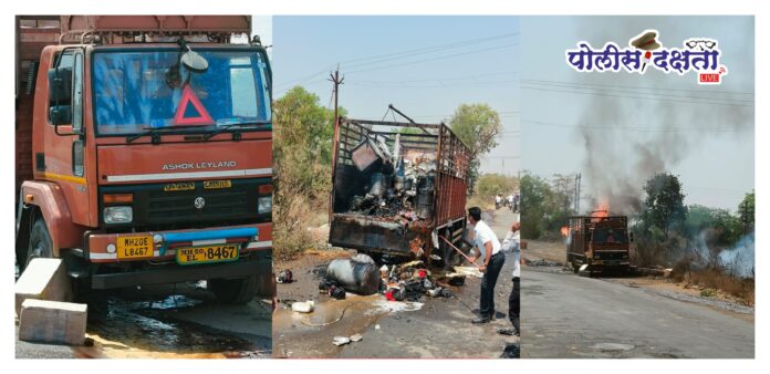 भुसावळ | जितेंद्र काटे | पोलीस दक्षता लाईव्ह :- भुसावळ तालुक्यातील कुऱ्हा पानाचे गावाजवळ जामनेर रोडवरील हॉटेल राजगड समोर शुक्रवारी (दि. १३ मार्च) सकाळी सुमारे ११.१५ वाजण्याच्या सुमारास एका आयशर मालवाहू गाडीतील वस्तूंना अचानक आग लागल्याची घटना घडली. सुदैवाने चालकाने प्रसंगावधान राखून गाडीतून उडी मारल्याने कोणतीही जीवितहानी झाली नाही.