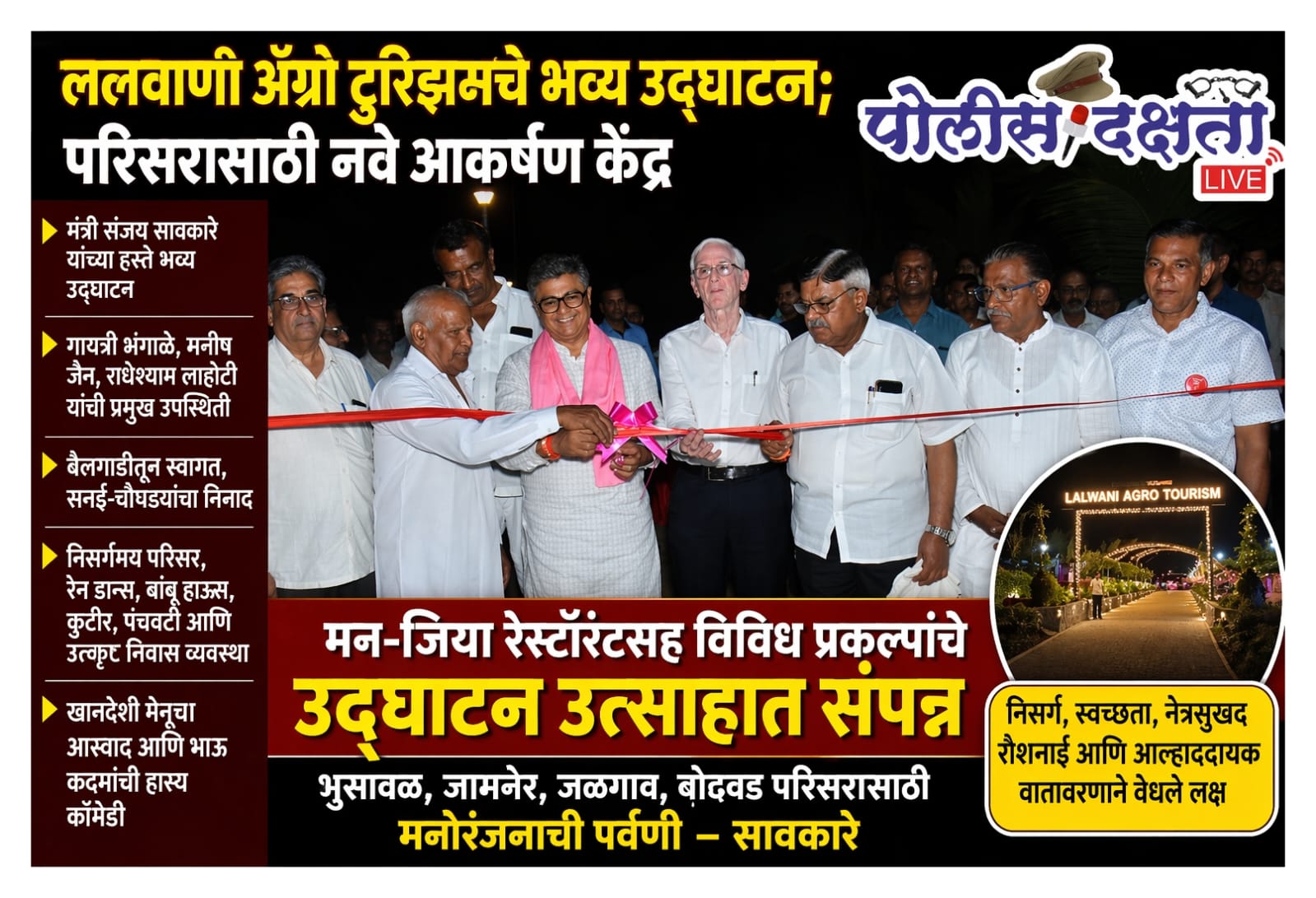 भुसावळ | प्रतिनिधी | पोलीस दक्षता लाईव्ह :- भुसावळ जवळील कुऱ्हे पानाचे शिवारात प्रा. डॉ. दिलीप ललवाणी यांनी साकारलेल्या ‘ललवाणी ॲग्रो टुरिझम’ व ‘मन-जिया रेस्टॉरंट’सह विविध प्रकल्पांचे उद्घाटन वस्रोद्योग मंत्री संजय सावकारे यांच्या हस्ते उत्साहात पार पडले. यावेळी नगराध्यक्ष गायत्री भंगाळे, माजी आमदार मनीष जैन, उद्योजक राधेश्याम लाहोटी, शिक्षणतज्ज्ञ संजय गरुड, माजी नगराध्यक्ष पारस ललवाणी व अॅड. अकील इस्माईल यांची प्रमुख उपस्थिती होती.