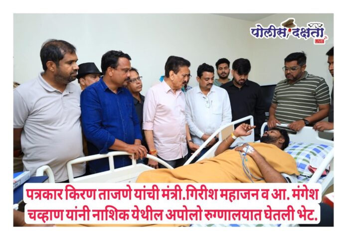 काल झालेल्या या हल्ल्यात गंभीर जखमी झालेल्या पत्रकार किरण ताजणे यांची मंत्री.गिरीश महाजन यांनी नाशिक येथील अपोलो रुग्णालयात भेट घेऊन विचारपूस केली. यावेळी आ.मंगेश चव्हाण,भाजपा पदाधिकारी व कार्यकर्ते मोठ्या संख्येने उपस्थित होते.