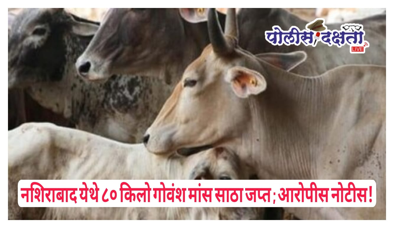 नशिराबाद | प्रतिनिधी | पोलीस दक्षता लाईव्ह :- नशिराबाद पोलिस ठाण्याच्या हद्दीत गोवंश संरक्षण कायद्याचे उल्लंघन केल्याप्रकरणी पोलिसांनी मोठी कारवाई करीत सुमारे ८० किलो वजनाचा गोवंशाचा मांससाठा जप्त केला आहे. या प्रकरणी सलिम खान हयात खान (वय ६५, रा. निवास मोहल्ला, नशिराबाद, ता. जळगाव) याच्याविरुद्ध गुन्हा दाखल करण्यात आला आहे. नशिराबाद पोलिस ठाण्यात गुन्हा दाखल करण्यात आला असून आरोपीला दि. ३० डिसेंबर रोजी सकाळी नोटीस देण्यात आली आहे. दि. ३० डिसेंबर रोजी पहाटे सुमारे ४.५० वाजेच्या सुमारास नशिराबाद शहरातील निवास मोहल्ला परिसरात आरोपीच्या घरासमोरच्या बाजूच्या सार्वजनिक जागी गोवंश जनावरांचे मांस विक्रीच्या उद्देशाने साठविल्याची माहिती पोलिसांना मिळाली. त्यानुसार नशिराबाद पोलिस ठाण्याचे पथक घटनास्थळी दाखल झाले असता तेथे अंदाजे ८० किलो वजनाचा गोवंशाचा मांससाठा तसेच एक लोखंडी कोयता मिळून आला. दोन्ही मुद्देमाल जप्त करण्यात आले आहे.