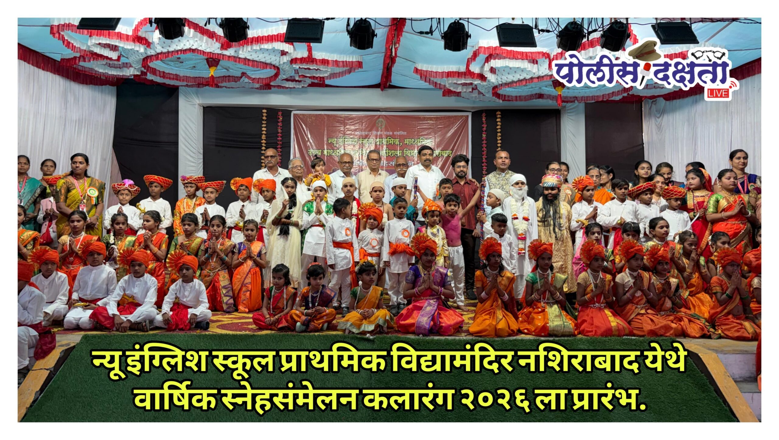 नशिराबाद | प्रतिनिधी | पोलीस दक्षता लाईव्ह :- नशिराबाद येथील न्यू इंग्लिश स्कूल प्राथमिक विद्यामंदिरात वार्षिक स्नेहसंमेलन कलारंग २०२६ चा प्रथम दिवस उत्साहपूर्ण वातावरणात पार पडला. शालेय विद्यार्थ्यांनी सादर केलेल्या रंगतदार सांस्कृतिक कार्यक्रमांनी उपस्थितांची मने जिंकली.