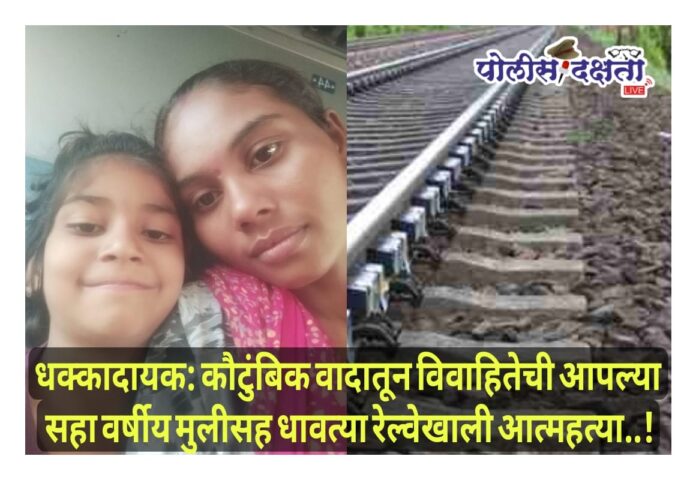 नशिराबाद | प्रतिनिधी | पोलीस दक्षता लाईव्ह :- नशिराबाद परिसरात सोमवारी उशिरा रात्री घडलेल्या हृदयद्रावक घटनेने संपूर्ण शहरात खळबळ उडाली आहे. कौटुंबिक वादातून एका विवाहितेने आपल्या सहा वर्षीय मुलीसह धावत्या रेल्वेखाली येऊन आत्महत्येचा धक्कादायक मार्ग अवलंबला. भादली रेल्वे पुलाजवळ घडलेल्या या घटनेमुळे परिसरात शोककळा पसरली आहे.