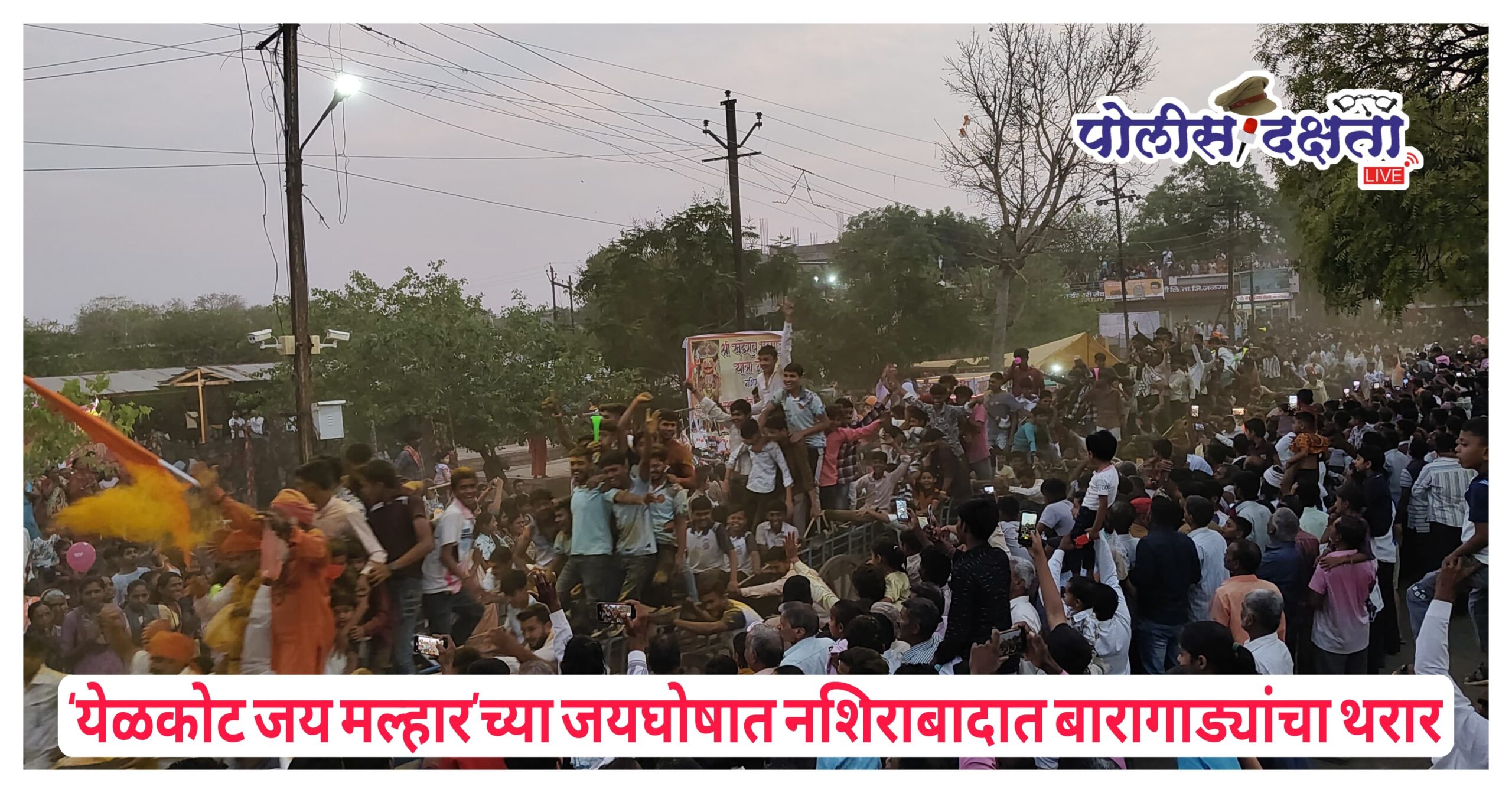 नशिराबाद | प्रतिनिधी | पोलीस दक्षता लाईव्ह :- नशिराबाद येथील ग्रामदैवत श्री खंडेराव महाराज यांच्या यात्रोत्सवातील मुख्य आकर्षण ठरणारा ‘बारागाड्या’ ओढण्याचा पारंपरिक सोहळा शुक्रवारी मोठ्या उत्साहात आणि भक्तिमय वातावरणात पार पडला. सुमारे दोनशे वर्षांची परंपरा लाभलेल्या या सोहळ्यावेळी मंदिर परिसरात ‘येळकोट येळकोट जय मल्हार’च्या घोषणांनी वातावरण दुमदुमून गेले.या ऐतिहासिक परंपरेनुसार बारागाड्या ओढण्याचा मान धोबी घराण्याकडे असून, यंदाही युवराज मोतीलाल धोबी यांनी ही परंपरा पुढे नेत सोहळा साजरा केला. सकाळी अभिषेक व महापूजेनंतर दुपारी वाद्यांच्या गजरात आणि भंडाऱ्याच्या उधळणीत बारागाड्या ओढण्याचा विधी पार पडला.