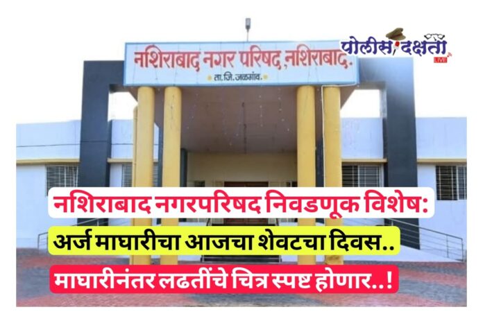 नशिराबाद │प्रतिनिधी | पोलीस दक्षता लाईव्ह :- नगरपरिषद निवडणुकीतील उमेदवार माघारीसाठी आज, 21 नोव्हेंबर हा शेवटचा दिवस असून सकाळी 11 ते दुपारी 3 वाजेपर्यंत अर्ज मागे घेण्याची प्रक्रिया पार पडणार आहे. त्यामुळं उमेदवारांमध्ये वाटाघाटी, समन्वय, विनवण्या, आश्वासने आणि पायघड्या घालण्याचा फेर पुन्हा एकदा सुरू असून संपूर्ण नशिराबादमध्ये राजकीय तापमान कमालीचे चढले आहे.आजचा दिवस निर्णायक मानला जात असून माघारीनंतरच नगराध्यक्ष आणि नगरसेवक पदांच्या अंतिम लढतीचे खरे चित्र स्पष्ट होणार आहे.