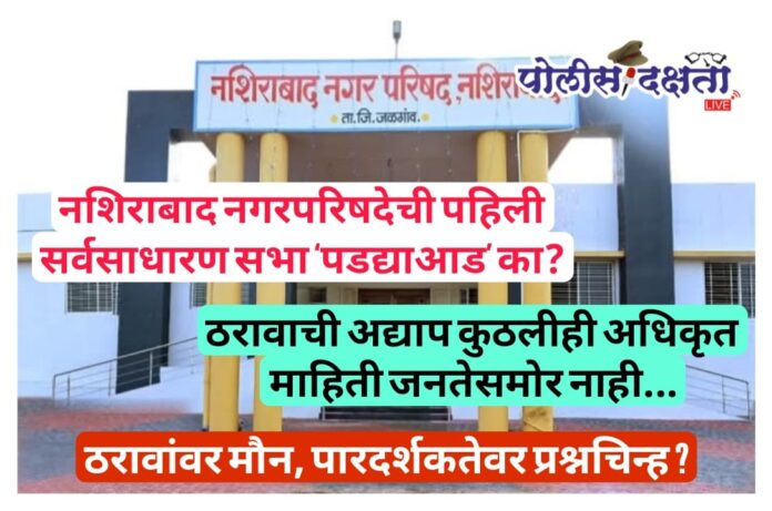 नशिराबाद नगरपरिषदेची पहिली सर्वसाधारण सभा अंधारातच?.. ठरावांवर मौन ; माहिती लपवली जात असल्याचा आरोप