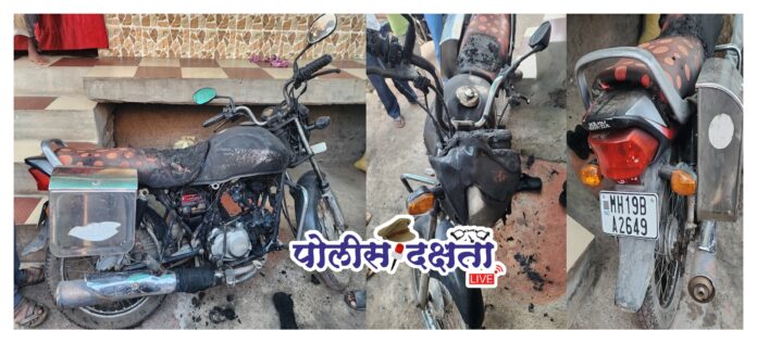 नशिराबाद | प्रतिनिधी | पोलीस दक्षता लाईव्ह :-  नशिराबाद येथील पेठ भागात काल मध्यरात्रीच्या सुमारास घरासमोर उभी असलेली दुचाकी पेट्रोल टाकून जाळल्याचा धक्कादायक प्रकार समोर आला आहे.
