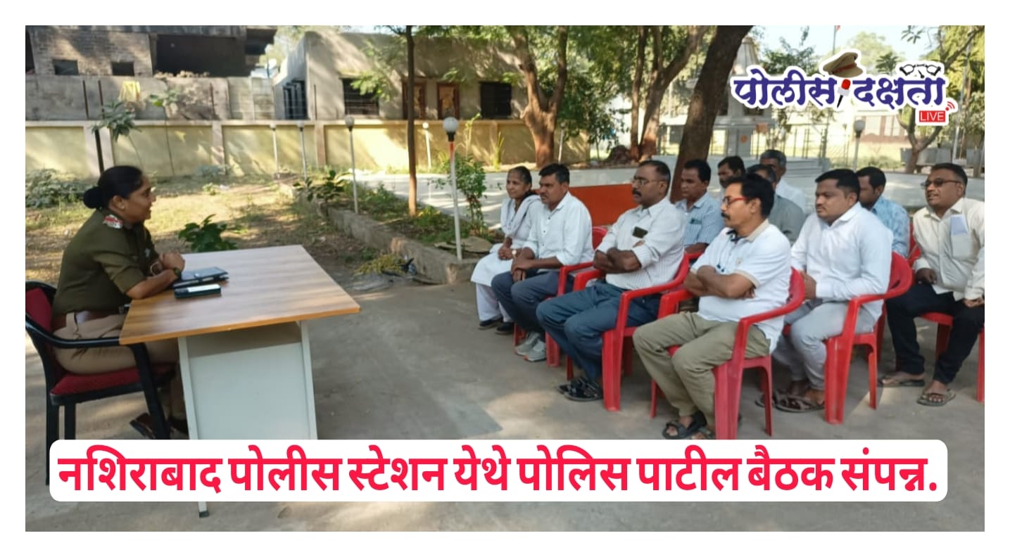 नशिराबाद | प्रतिनिधी | पोलीस दक्षता लाईव्ह :- नशिराबाद पोलीस ठाण्यात सहाय्यक पोलीस निरीक्षक (API) योगिता मधुकर नारखेडे यांनी आज तातडीची पोलीस पाटील बैठक आयोजित केली. आगामी ३१ डिसेंबर (थर्टी फर्स्ट) उत्सव तसेच लवकरच होऊ घातलेल्या जिल्हा परिषद व पंचायत समिती निवडणुकांच्या पार्श्वभूमीवर कायदा व सुव्यवस्था अबाधित ठेवण्यासाठी या बैठकीत सविस्तर चर्चा करण्यात आली.