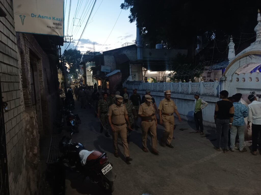 नशिराबाद | प्रतिनिधी | पोलीस दक्षता लाईव्ह :- काल दिनांक १ ऑक्टोबर रोजी दुर्गा उत्सवाच्या पार्श्वभूमीवर नशिराबाद पोलीस स्टेशनच्या वतीने कडेकोट बंदोबस्त ठेवत नशिराबाद शहरात रूट मार्च काढण्यात आला.पोलीस अधीक्षक माहेश्वर रेड्डी यांच्या आदेशानुसार सायंकाळी ६.१० ते ६.५० वाजेपर्यंत हा रूट मार्च पार पडला. या रूट मार्चमध्ये नशिराबाद पोलीस स्टेशनचे २ अधिकारी, २५ अंमलदार, ५ पोलीस कर्मचारी, आरसीबी क्रमांक ६ मधील १३ कर्मचारी तसेच तब्बल ४० होमगार्ड सहभागी झाले होते.
