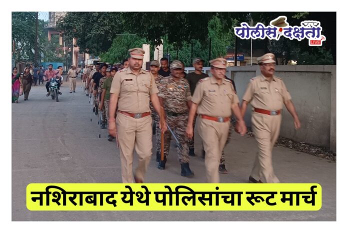 रूट मार्चदरम्यान नशिराबाद पोलीस स्टेशन येथून सुरू होऊन उंटबिडी चौक, बस स्टँड, शिवाजी चौक, हनुमान पेठ, ग्रामपंचायत चौक, इंदिरा चौक, कुंभार दरवाजा, आठवडे बाजार, विठ्ठल मंदिर, होळी मैदान, उंच आड, स्वातंत्र चौक, साती बाजार, रामपेठ मार्गे परत नशिराबाद पोलीस स्टेशनपर्यंत कडक शिस्त व शिस्तबद्ध पद्धतीने पथसंचलन करण्यात आले. दुर्गा उत्सव काळात शांतता व कायदा सुव्यवस्था अबाधित राहावी यासाठी घेतलेल्या या रूट मार्चमुळे नागरिकांमध्ये सुरक्षिततेची भावना निर्माण झाली.