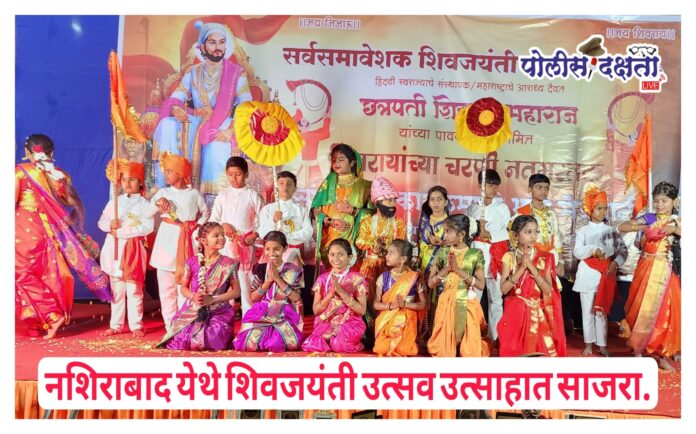 नशिराबाद | प्रतिनिधी | पोलीस दक्षता लाईव्ह :- हिंदवी स्वराज्याचे संस्थापक छत्रपती शिवाजी महाराज यांच्या जयंतीनिमित्त नशिराबाद शहरात यंदा भव्य आणि सर्वसमावेशक उत्सवाचे आयोजन करण्यात आले होते. १९ फेब्रुवारी रोजी फ्रूट सेल चौक परिसरात झालेल्या सार्वजनिक कार्यक्रमाला विविध समाजघटकांतील नागरिकांनी मोठ्या संख्येने उपस्थित राहून उत्सवाला उत्स्फूर्त प्रतिसाद दिला.