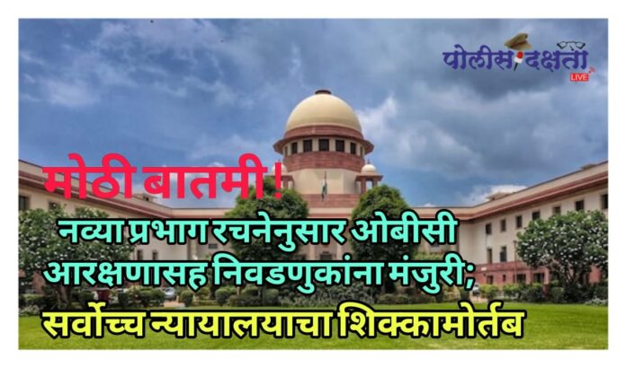 मुंबई | प्रतिनिधी | पोलीस दक्षता लाईव्ह :- मोठी बातमी समोर येत आहे, नव्या प्रभाग रचनेनुसार ओबीसी आरक्षणासह निवडणुकांना मंजुरी मिळाली आहे. नव्या प्रभाग रचनेला आव्हान देणाऱ्या याचिका सुप्रीम कोर्टाकडून फेटाळण्यात आल्या आहेत. नव्या प्रभाग रचनेला आव्हान देणाऱ्या काही याचिका सुप्रीम कोर्टात दाखल करण्यात आल्या होत्या, मात्र या याचिका आता न्यायालयानं फेटाळल्या आहेत, त्यामुळे आता नव्या प्रभाग रचनेनुसार ओबीसी आरक्षणासह निवडणुकांना मंजुरी मिळाली आहे.