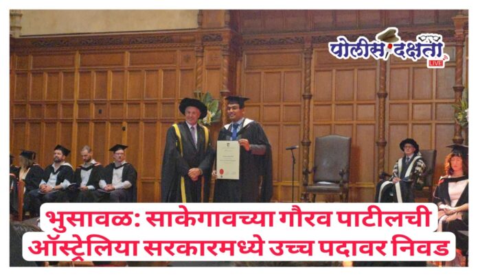 भुसावळ | प्रतिनिधी | जितेंद्र काटे | पोलीस दक्षता लाईव्ह :- भुसावळ तालुक्यातील साकेगाव येथील सर्वसामान्य कुटुंबातील गौरव संजय पाटील या युवकाने जिद्द, चिकाटी आणि मेहनतीच्या जोरावर ऑस्ट्रेलिया सरकारमध्ये उच्च पद मिळवून गावाचे व परिसराचे नाव उज्ज्वल केले आहे.