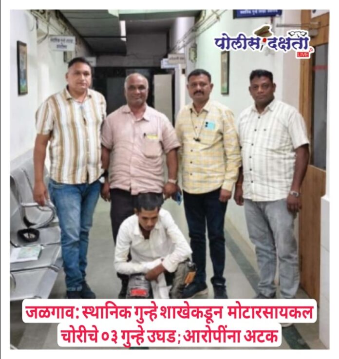 जळगाव | प्रतिनिधी | पोलीस दक्षता लाईव्ह :- जळगाव शहरात वाढत असलेल्या मोटारसायकल चोरीच्या घटनांना आळा घालण्यासाठी पोलीस अधीक्षक डॉ. महेश्वर रेड्डी यांनी दिलेल्या आदेशानुसार स्थानिक गुन्हे शाखेने प्रभावी कारवाई करत तीन मोटारसायकल चोरीचे गुन्हे उघडकीस आणून एक आरोपी अटक केला आहे. वरिष्ठ पोलीस निरीक्षक राहुल गायकवाड यांच्या नेतृत्वाखाली पोउपनि जितेंद्र वल्टे, शेखर डोमाळे, पोहेका संदीप पाटील, हरीलाल पाटील, प्रविण मांडोळे, पोको राहुल कोळी व चालक पोहेका दिपक चौधरी यांच्या पथकाने ही कारवाई केली.