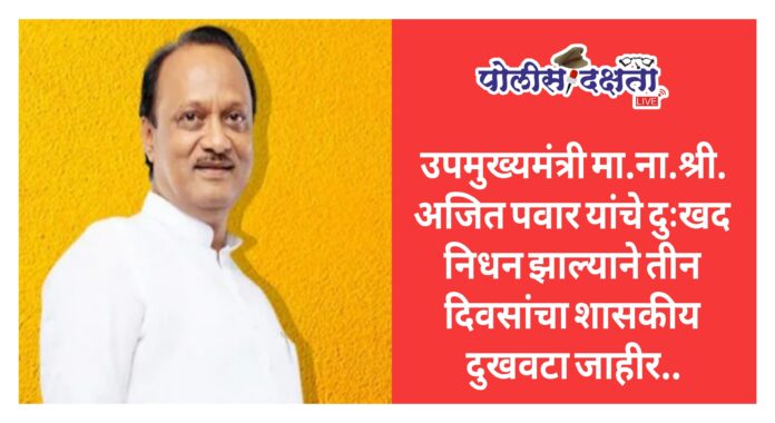 उपमुख्यमंत्री अजित पवार यांच्या निधनाने राज्यात शोककळा ; तीन दिवसांचा शासकीय दुखवटा जाहीर